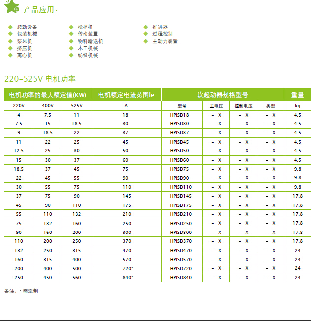 HPISD泛用型軟起動(dòng)器用雙MCU微處理器完成通訊、故障處理、信號(hào)采集、參數(shù)給定??蓪?duì)短路、過壓、欠壓、過載等進(jìn)行全面的保護(hù)和監(jiān)控,支持在線升級(jí)控制程序??蓮V泛用于紡織、冶金、石油化工、水處理、船舶、采礦、城市供水和機(jī)械設(shè)備等行業(yè)。